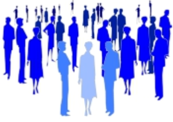 „Menschengruppe in Blautönen“.
